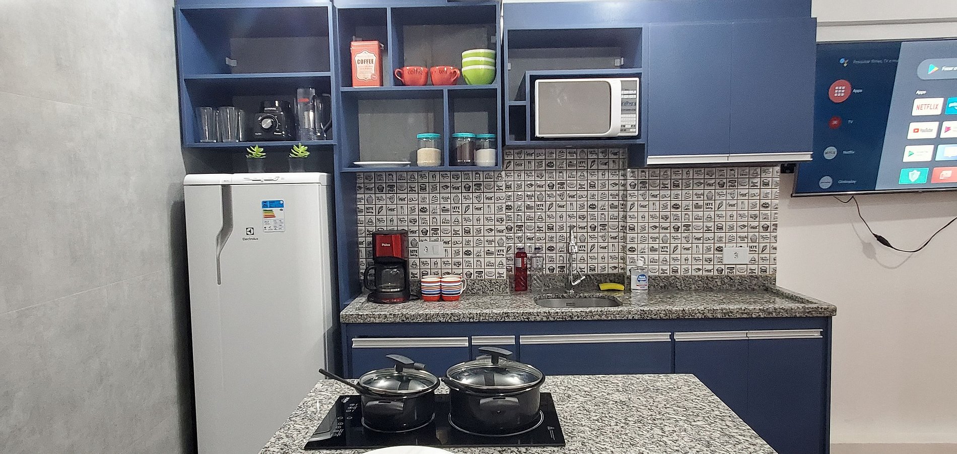 Todas as unidades possuem TV Smart, todos os utensílios de cama, mesa.