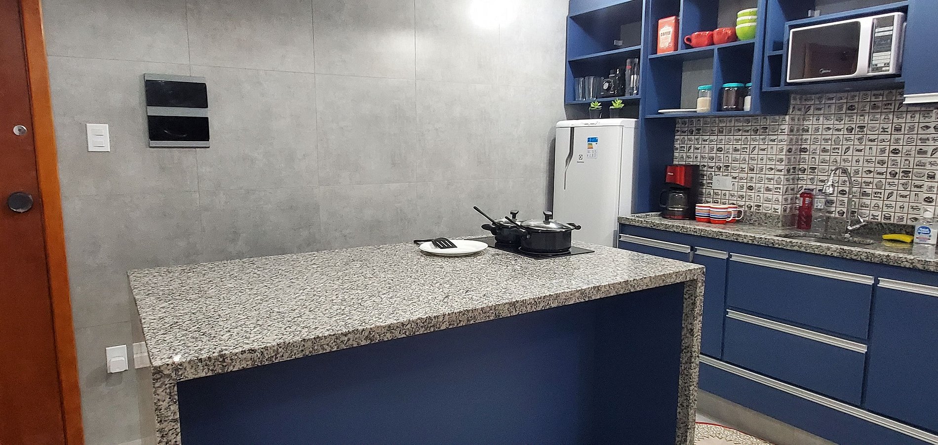 The kitchen is another highlight of this studio. With a granite island measuring 1 meter wide by 1.70 meters long, you can cook and socialize with plenty of space, comfort, and sophistication.