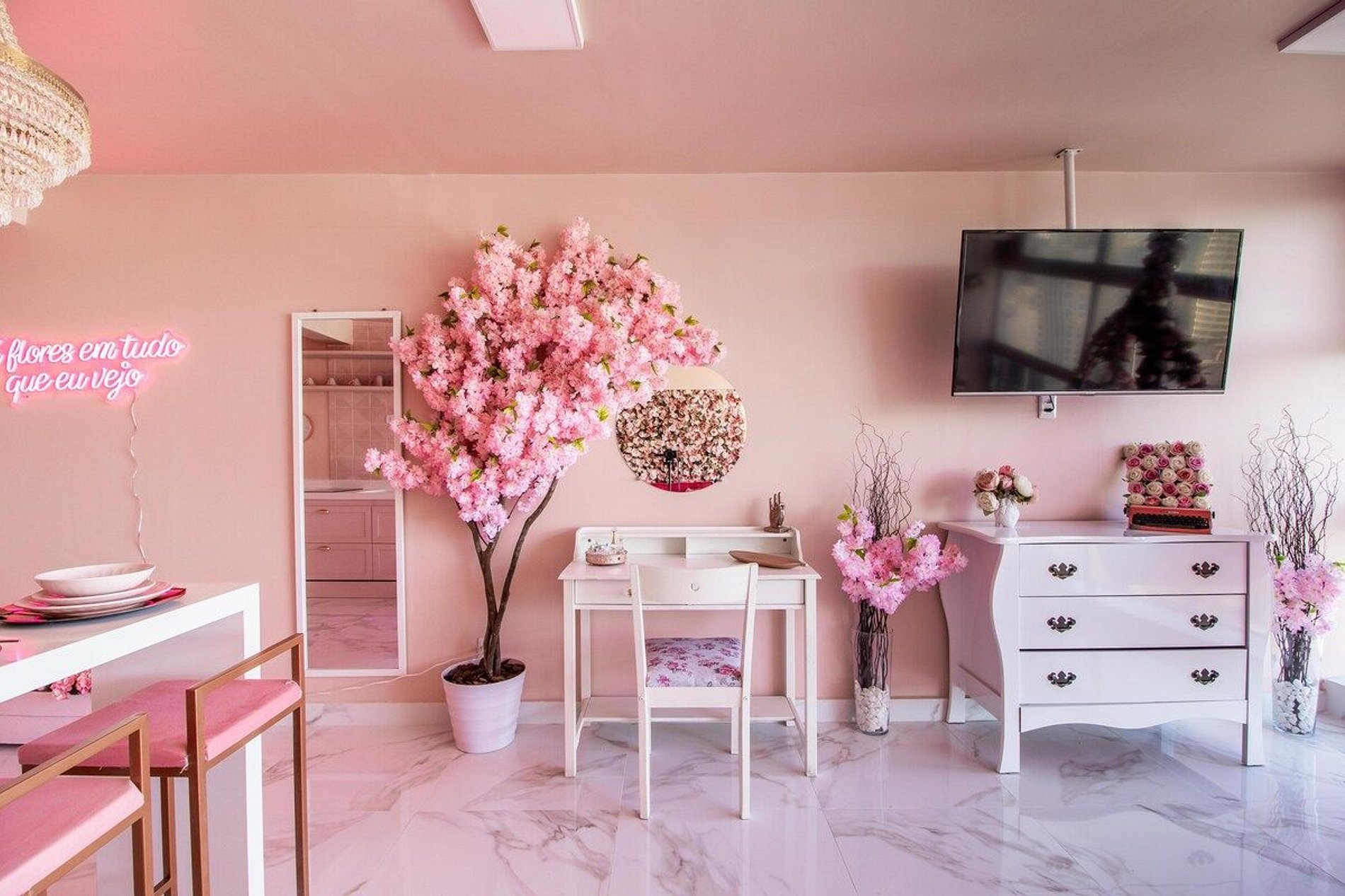 Sinta-se dentro de um sonho florido e cor de rosa! Esse lindo estúdio de 37 m² está localizado no 30º andar do edifício Mirante do Vale, com uma vista espetacular do Vale do Anhangabaú, no Centro Histórico de São Paulo e foi inteiramente reformado e mobiliado com decoração exclusiva feita à mão. **Sessões de fotos e vídeos (para fins pessoais) são bem vindas. Para fins comerciais, deve ser combinado previamente. *** Não fazemos locação por hora. Apenas diária.