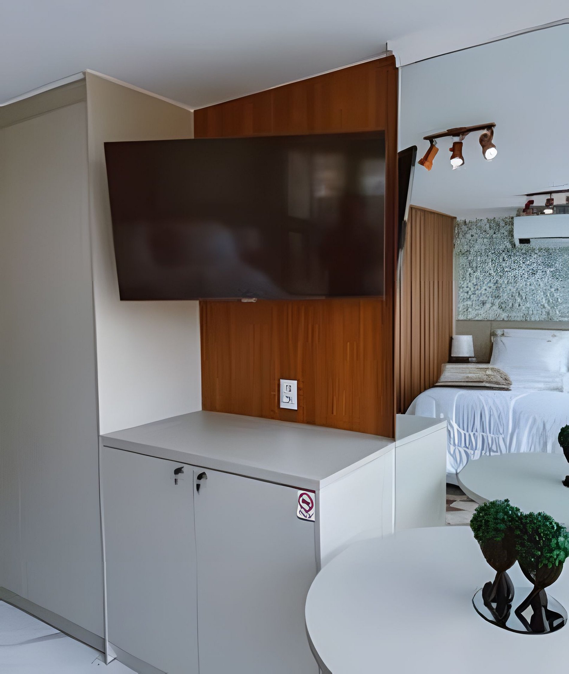 Todas as unidades possuem TV Smart, todos os utensílios de cama, mesa.