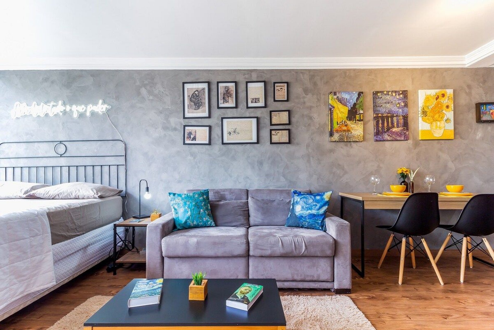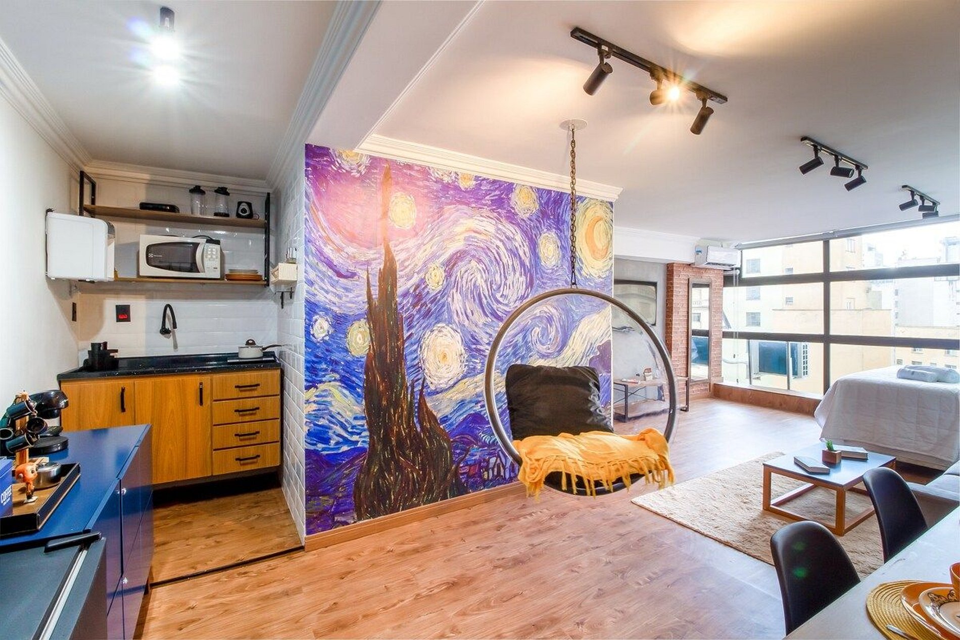 Sinta-se dentro de um museu moderno e sofisticado em homenagem ao incrível Van Gogh! Esse lindo estúdio de 37 m² está localizado no edifício Mirante do Vale, no Centro Histórico de São Paulo e foi inteiramente reformado e mobiliado no estilo industrial. **Sessões de fotos e vídeos (para fins pessoais) são bem vindas. Para fins comerciais, deve ser combinado previamente. “Ache belo tudo o que puder. A maioria das pessoas não acha belo o suficiente.” - Vincent Van Gogh