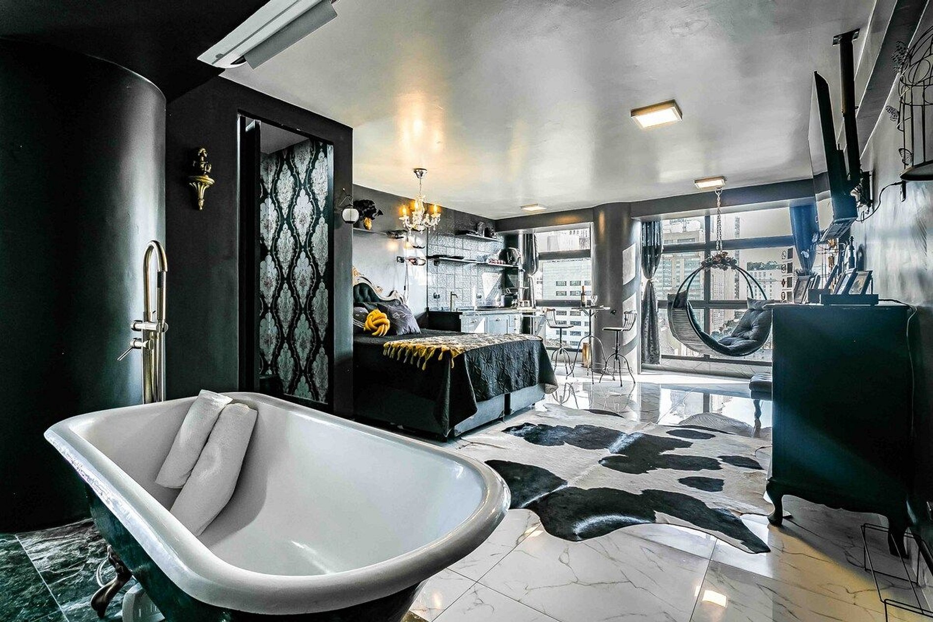 Sinta-se dentro de um verdadeiro spa gótico vitoriano! Esse lindo estúdio de 37 m² está localizado no 15º andar do edifício Mirante do Vale, com uma vista espetacular do Vale do Anhangabaú, no Centro Histórico de São Paulo e foi inteiramente reformado e mobiliado com decoração exclusiva. **Sessões de fotos e vídeos (para fins pessoais) são bem vindas. Para fins comerciais, deve ser combinado previamente. *** Não fazemos locação por hora. Apenas diária.